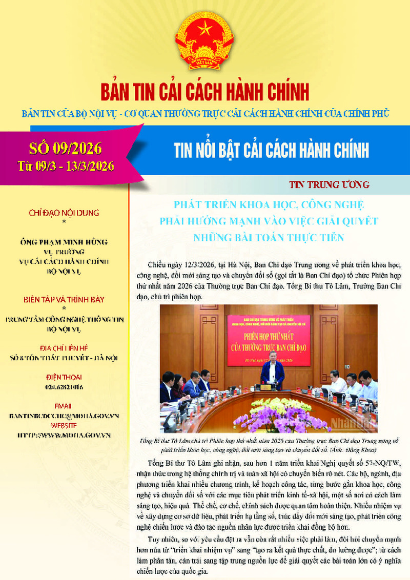 | Tiêu đề văn bản | Bản tin điện tử cải cách hành chính số 09/2026, từ ngày 09/3/2026 đến ngày 13/3/2026 | ||