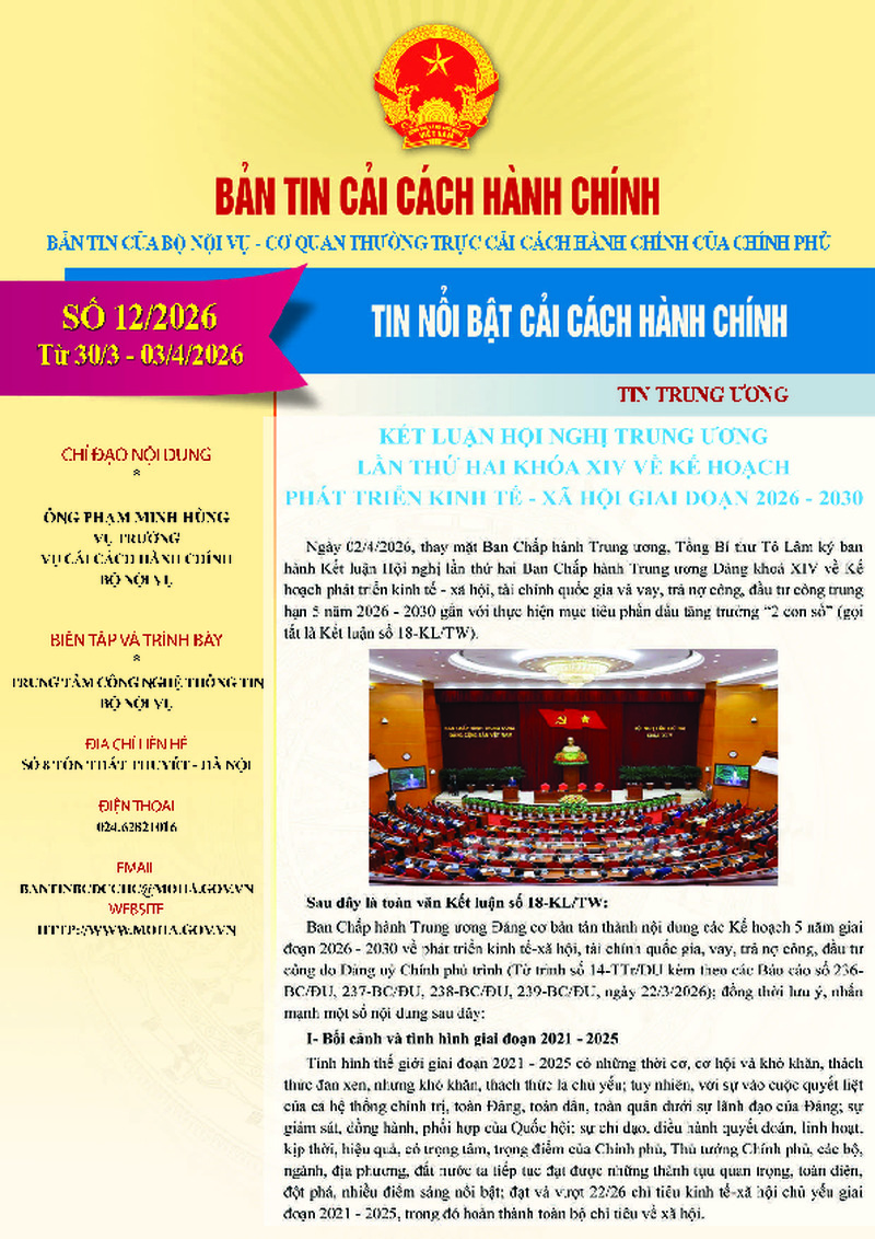 | Tiêu đề văn bản | Bản tin điện tử cải cách hành chính số 12/2026, từ ngày 30/3/2026 đến ngày 03/4/2026 | ||