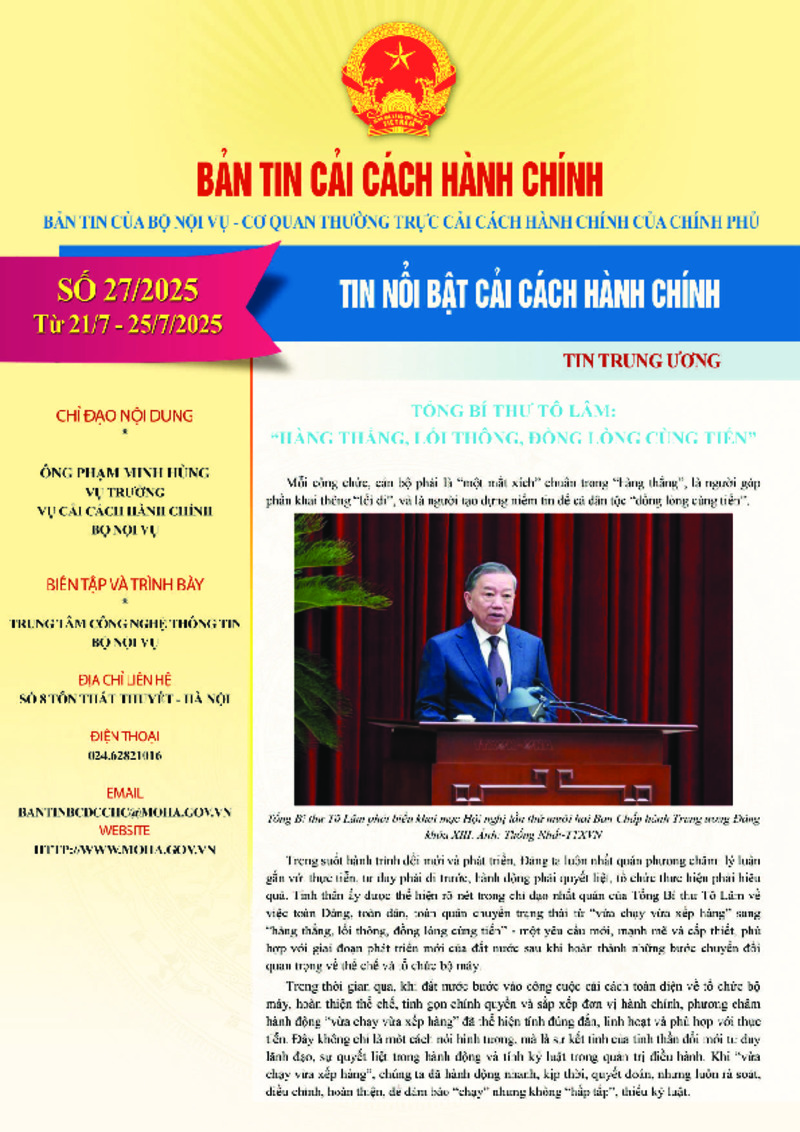 | Tiêu đề văn bản | Bản tin điện tử cải cách hành chính số 27/2025, từ ngày 21/07/2025 đến ngày 25/07/2025 | ||