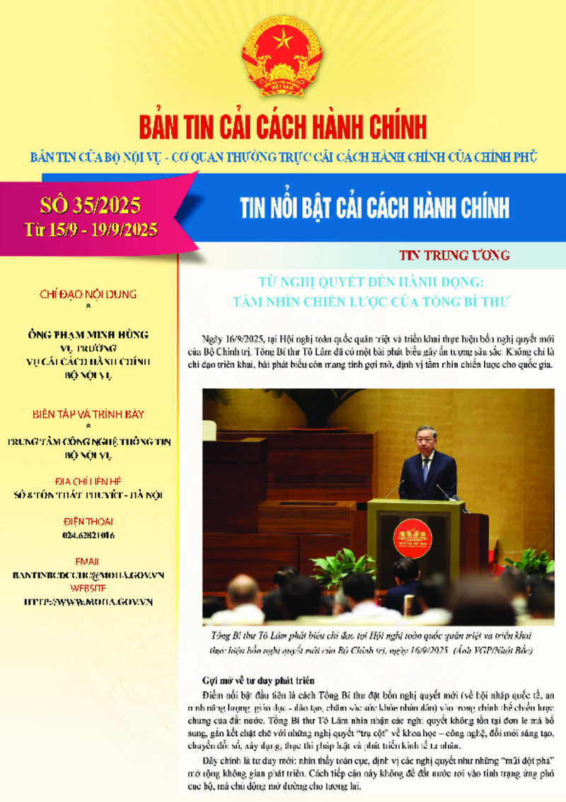 | Tiêu đề văn bản | Bản tin điện tử cải cách hành chính số 35/2025, từ ngày 15/09/2025 đến ngày 19/09/2025 | ||