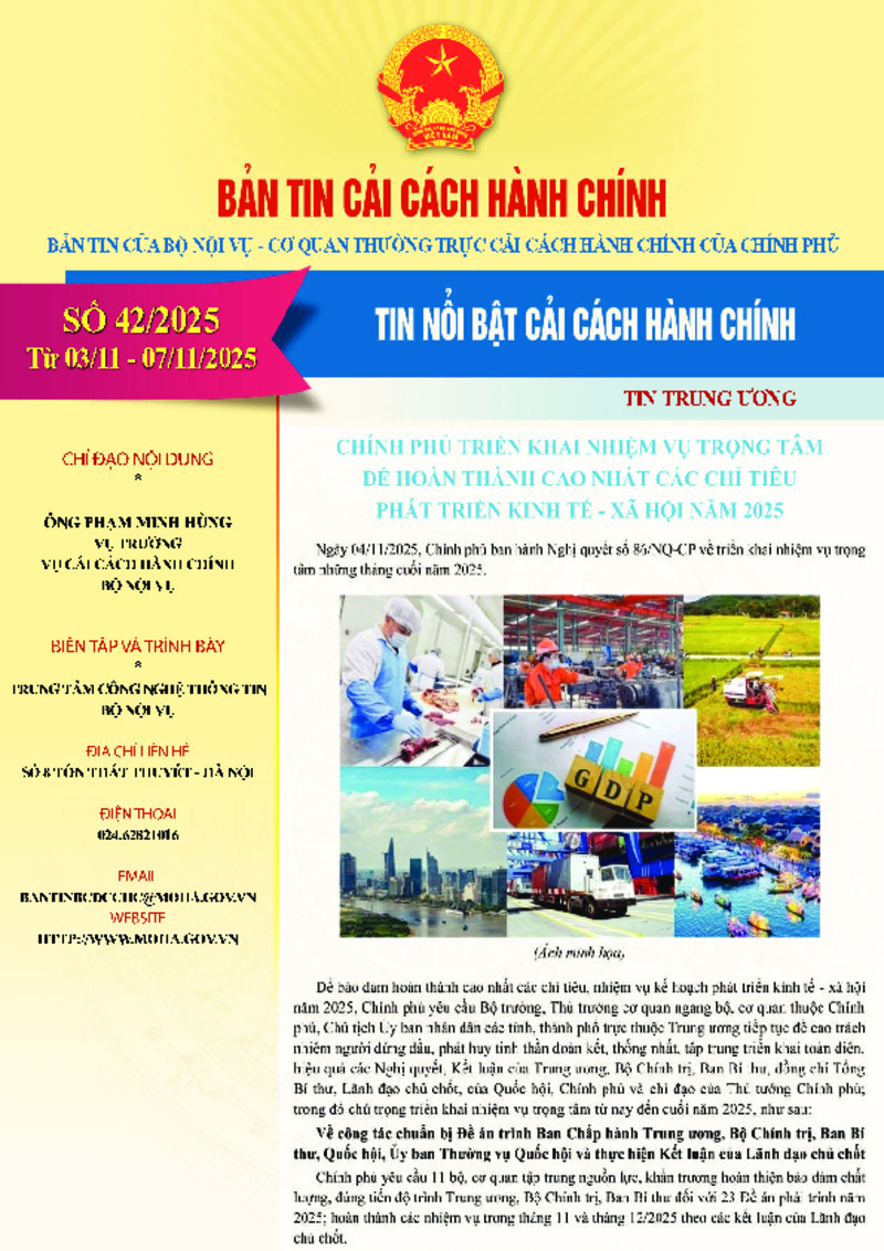 | Tiêu đề văn bản | Bản tin điện tử cải cách hành chính số 42/2025, từ ngày 03/11/2025 đến ngày 07/11/2025. | ||