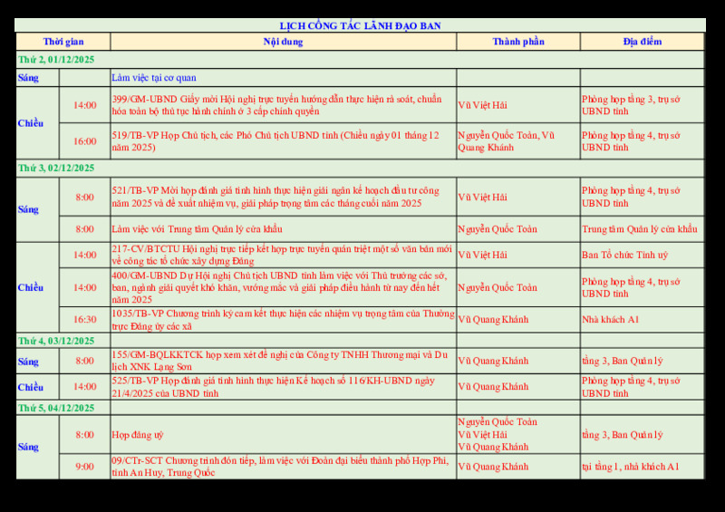 | Tiêu đề văn bản | Lịch công tác lãnh đạo Ban tuần 49/2025 | ||
