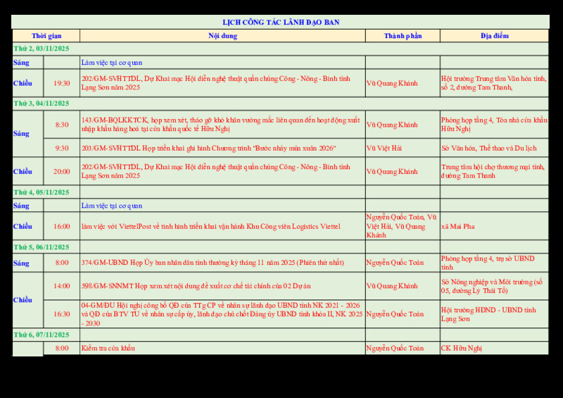 | Tiêu đề văn bản | Lịch công tác tuần 45/2025 | ||
