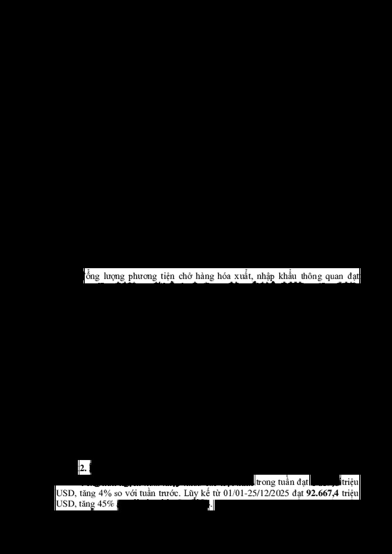 | Tiêu đề văn bản | Báo cáo tuần (từ ngày 19/12-25/12/2025) tình hình xuất nhập khẩu hàng hóa qua các cửa khẩu trên địa bàn tỉnh | ||
