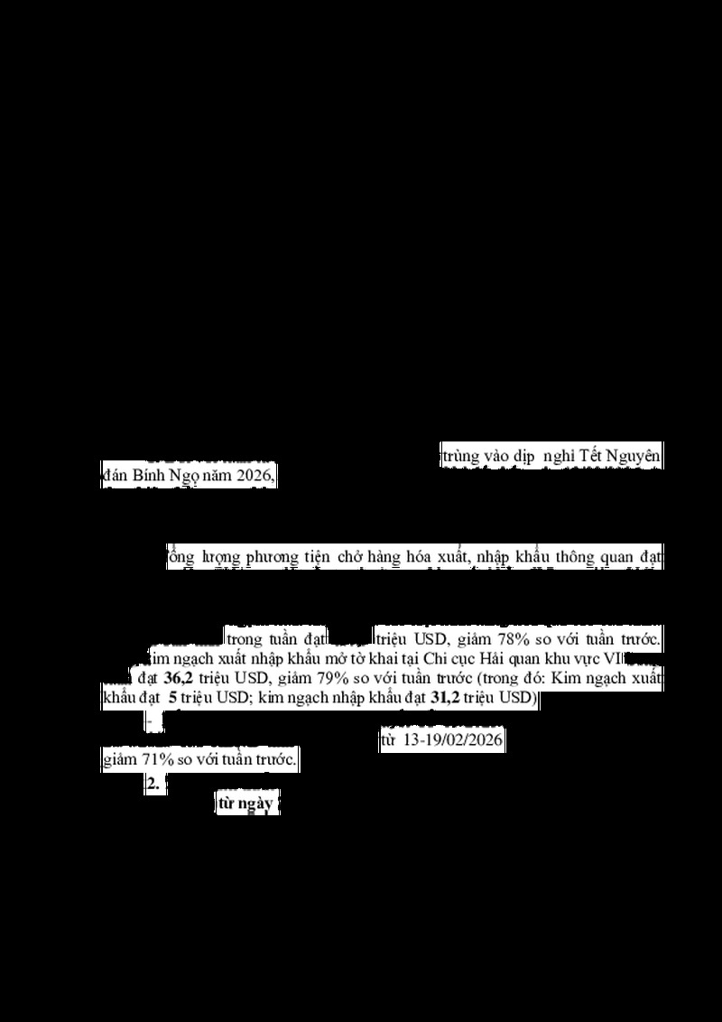 | Tiêu đề văn bản | Báo cáo tuần (từ ngày 20/02/2026-26/02/2026 ) tình hình xuất nhập khẩu hàng hóa qua các cửa khẩu trên địa bàn tỉnh | ||