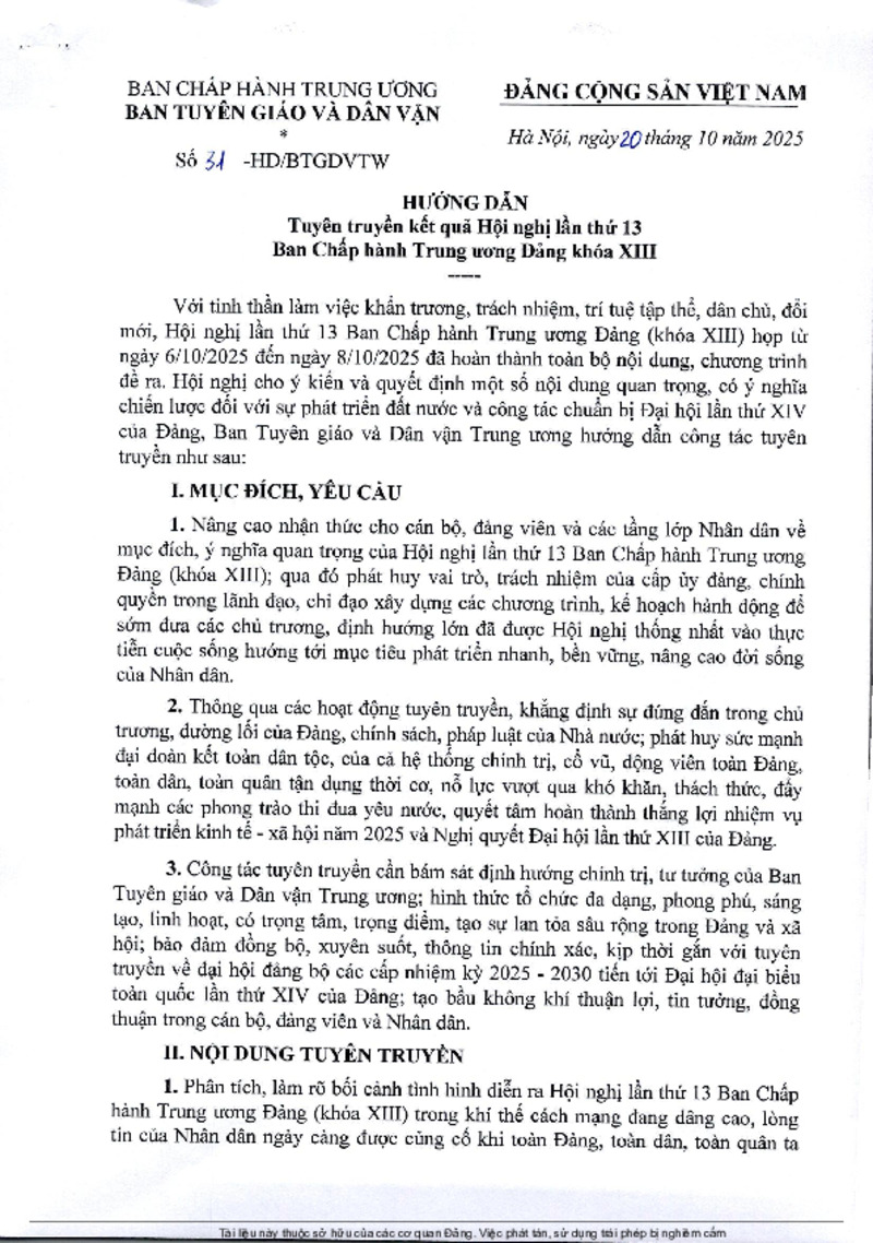 | Tiêu đề văn bản | Hướng dẫn tuyên truyền kết quả Hội nghị lần thứ 13 BCH Trung ương đảng khoá XIII | ||
