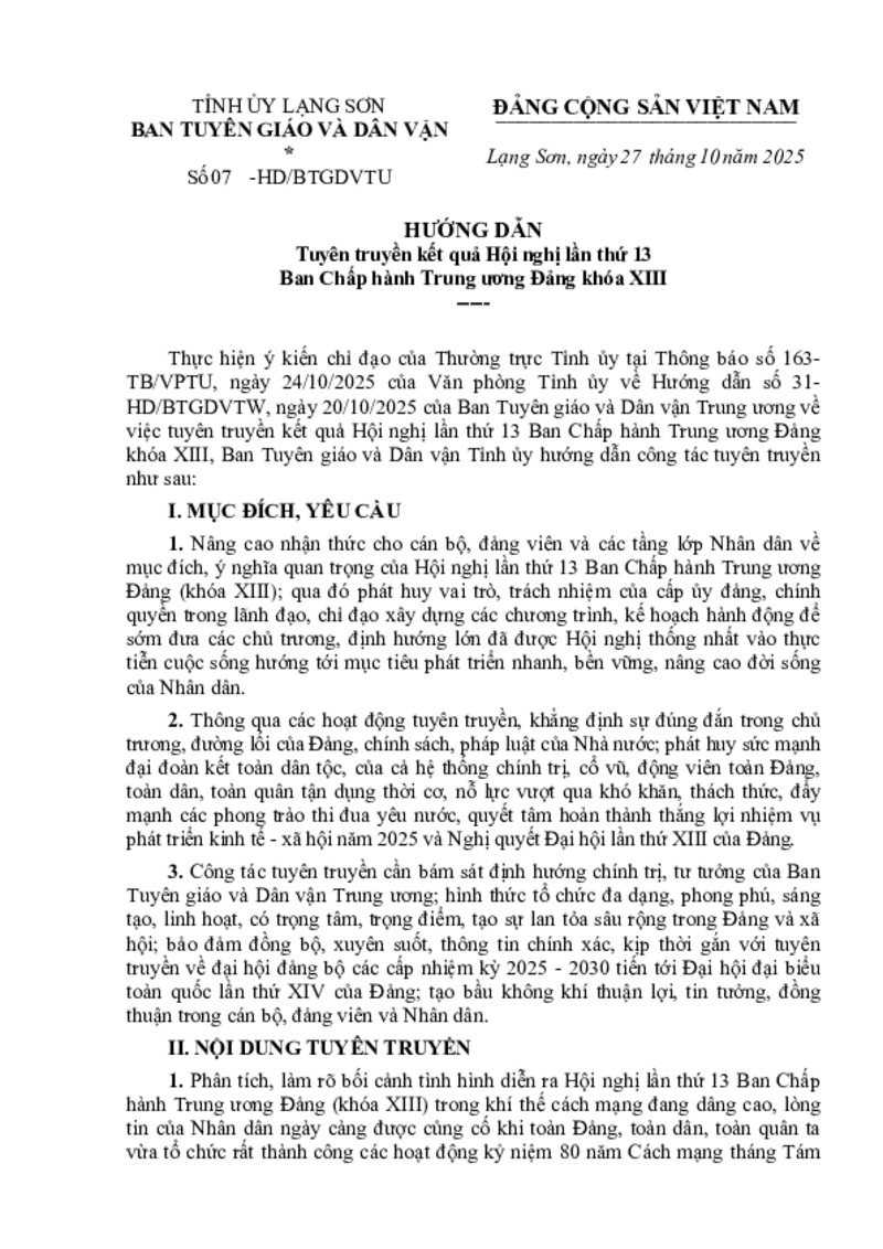 | Tiêu đề văn bản | Hướng dẫn tuyên truyền kết quả Hội nghị lần thứ 13 BCH Trung ương đảng khoá XIII | ||