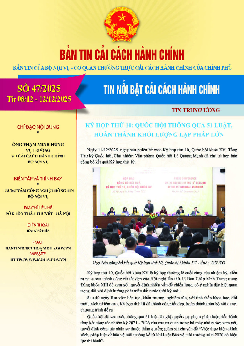 | Tiêu đề văn bản | Bản tin điện tử cải cách hành chính số 47/2025, từ ngày 08/12/2025 đến ngày 12/12/2025 | ||