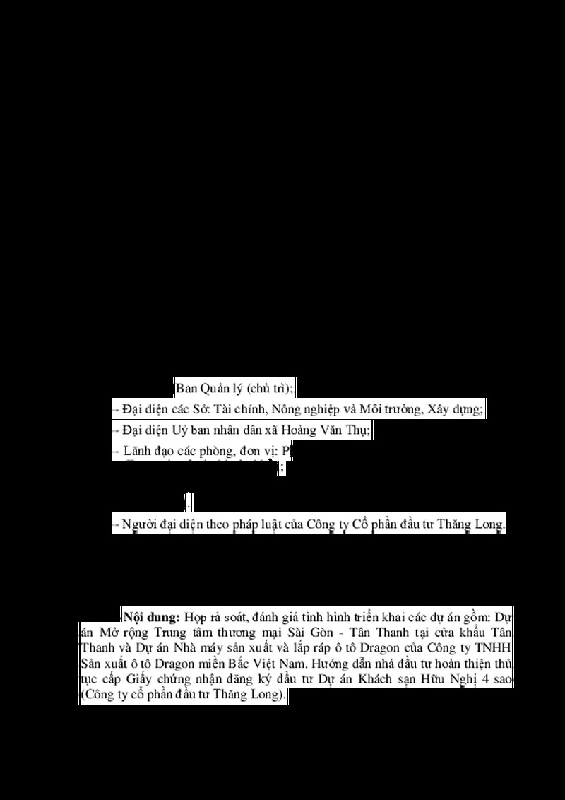 | Tiêu đề văn bản | Giấy mời Họp xem xét tình hình hoạt động một số dự án trên địa bàn xã Hoàng Văn Thụ, tỉnh Lạng Sơn | ||
