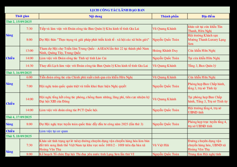 Tiêu đề văn bản | Lịch công tác tuần 38/2025 | ||