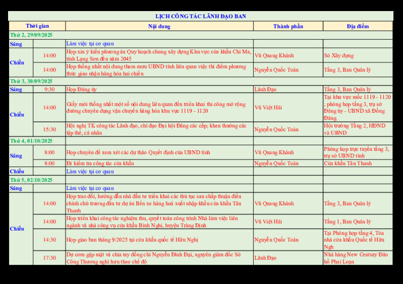 Tiêu đề văn bản | Lịch công tác tuần 40/2025 | ||