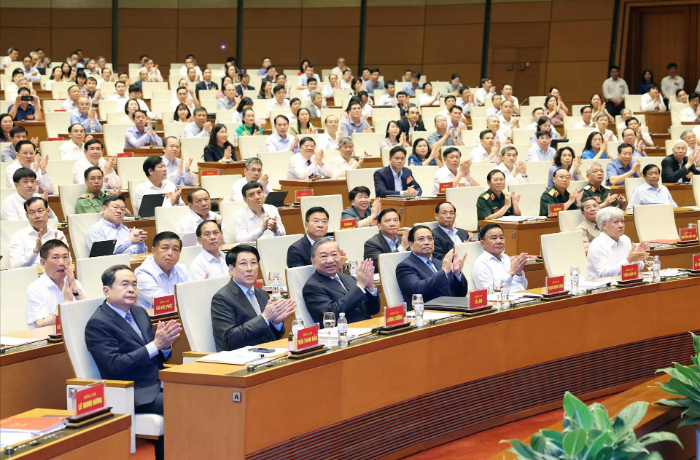 Tổng Bí thư Tô Lâm và các đại biểu tham dự Hội nghị tại điểm cầu Trung ương tại Hội trường Diên Hồng - ảnh Ineternet