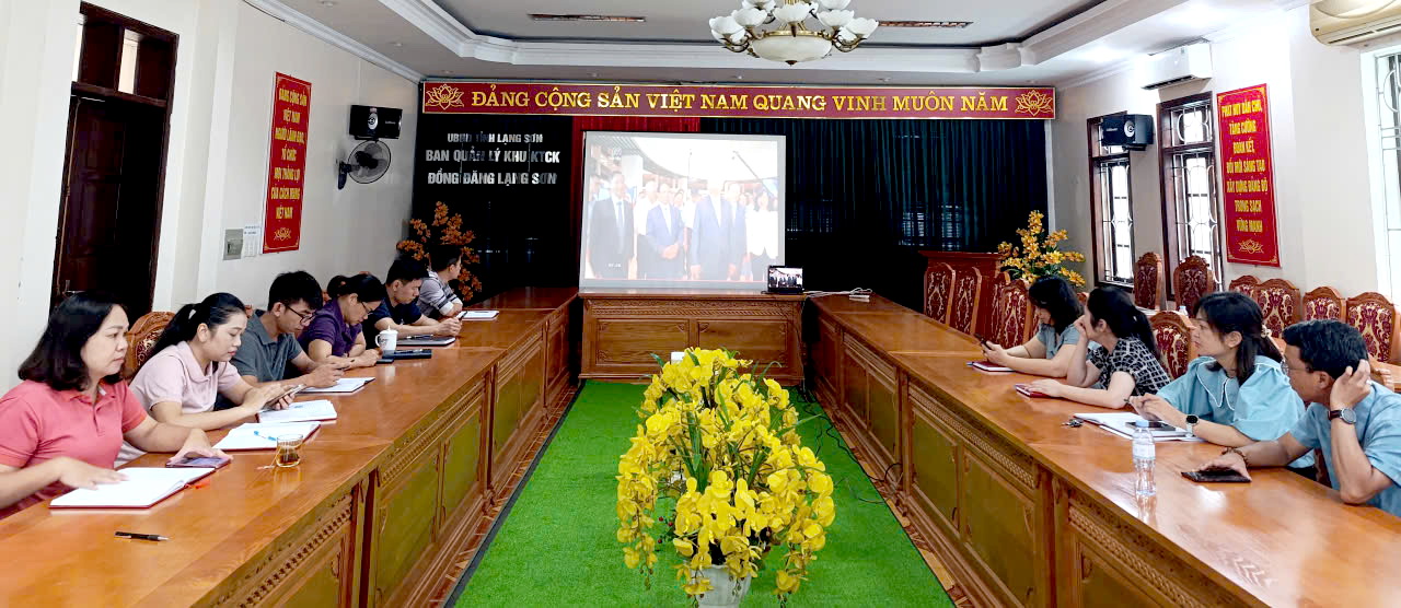 Thực hiện Kế hoạch số 127-KH/BTGDVTW, ngày 12/9/2025 của Ban Tuyên giáo và Dân vận Trung ương về tổ chức Hội nghị toàn quốc quán triệt và triển khai thực hiện Nghị quyết số 59-NQ/TW, ngày 24/01/2025 của Bộ Chính trị về hội nhập quốc tế trong tình hình mới; Nghị quyết số 70-NQ/TW, ngày 20/8/2025 của Bộ Chính trị về bảo đảm an ninh năng lượng quốc gia đến năm 2030, tầm nhìn đến năm 2045; Nghị quyết số 71-NQ/TW, ngày 22/8/2025 của Bộ Chính trị về đột phá phát triển giáo dục và đào tạo và Nghị quyết số 72-NQ/TW, ngày 09/9/2025 của Bộ Chính trị về một số giải pháp đột phá, tăng cường bảo vệ, chăm sóc và nâng cao sức khỏe Nhân dân. Thực hiện chỉ đạo của Tỉnh uỷ Lạng Sơn và Đảng uỷ UBND tỉnh, sáng ngày 16/9/2025, Đảng uỷ Ban Quản lý Khu kinh tế cửa khẩu Đồng Đăng – Lạng Sơn đã triệu tập 100% đảng viên tham dự Hội nghị trực tuyến tại điểm cầu Ban Quản lý Khu kinh tế cửa khẩu Đồng Đăng – Lạng Sơn và điểm cầu Trung tâm Quản lý cửa khẩu.