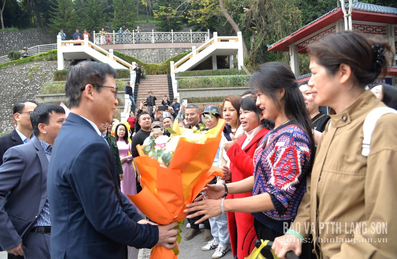 Tại chương trình, lãnh đạo Trung tâm XTĐTTM&DL tỉnh đã giới thiệu tới du khách về những sản phẩm du lịch tiêu biểu của tỉnh, đặc biệt là những tiềm năng, thế mạnh của Công viên địa chất toàn cầu UNESCO Lạng Sơn nói riêng và du lịch Lạng Sơn nói chung. Tiếp đó, lãnh đạo Trung tâm XTĐTTM&DL tỉnh, lãnh đạo UBND Xã Đồng Đăng, Ban Quản lý Khu kinh tế cửa khẩu Đồng Đăng và lãnh đạo Đồn Biên phòng Cửa khẩu Quốc tế Hữu Nghị đã tặng quà cho hơn 40 du khách Trung Quốc đầu tiên đến Lạng Sơn qua Cửa khẩu Quốc tế Hữu Nghị năm 2026.