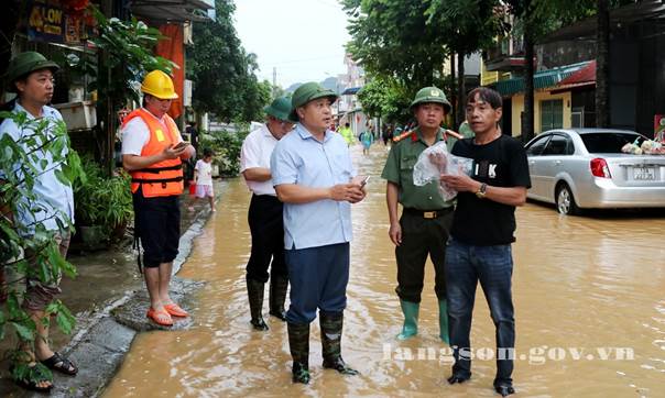 Phó Thủ tướng Chính phủ Hồ Đức Phớc và các đồng chí lãnh đạo tỉnh kiểm tra thực tế công tác ứng phó ngập úng tại xã Hữu Lũng