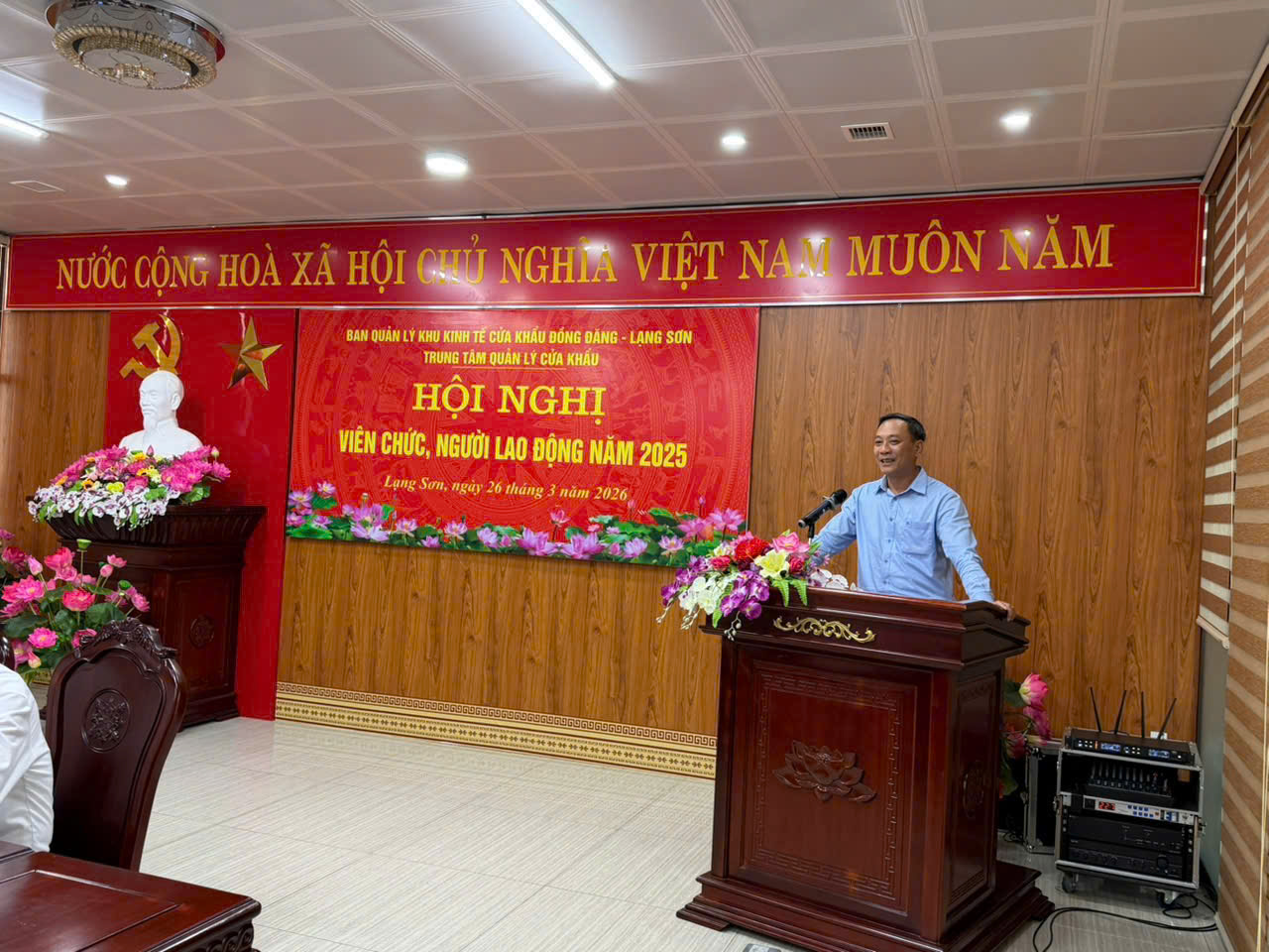Ngày 26/3/2026, Trung tâm Quản lý cửa khẩu đã phối hợp với Công đoàn cơ sở Trung tâm tổ chức Hội nghị viên chức, người lao động năm 2025. Đây là sự kiện có ý nghĩa quan trọng, nhằm phát huy quyền làm chủ của viên chức, người lao động; tổng kết, đánh giá những kết quả đã đạt được trong năm qua, đồng thời thảo luận và đề ra phương hướng, nhiệm vụ trong năm 2026.