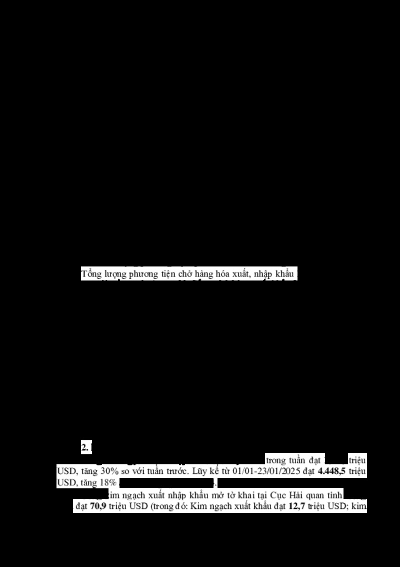 | Tiêu đề văn bản | Báo cáo tuần (từ ngày 17-23/01/2025) tình hình xuất nhập khẩu hàng hóa qua các cửa khẩu trên địa bàn tỉnh | ||